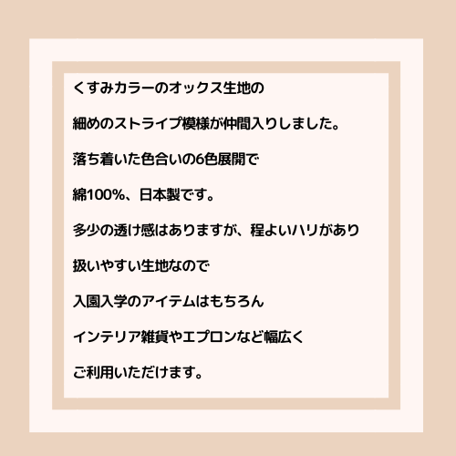 くすみカラーのオックス生地の 細めのストライプ模様が仲間入りしました。
