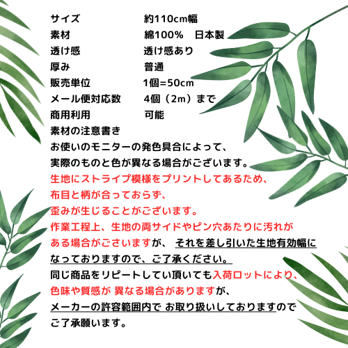 生地にストライプ模様をプリントしてあるため、 布目と柄が合っておらず、 歪みが生じることがございます。
